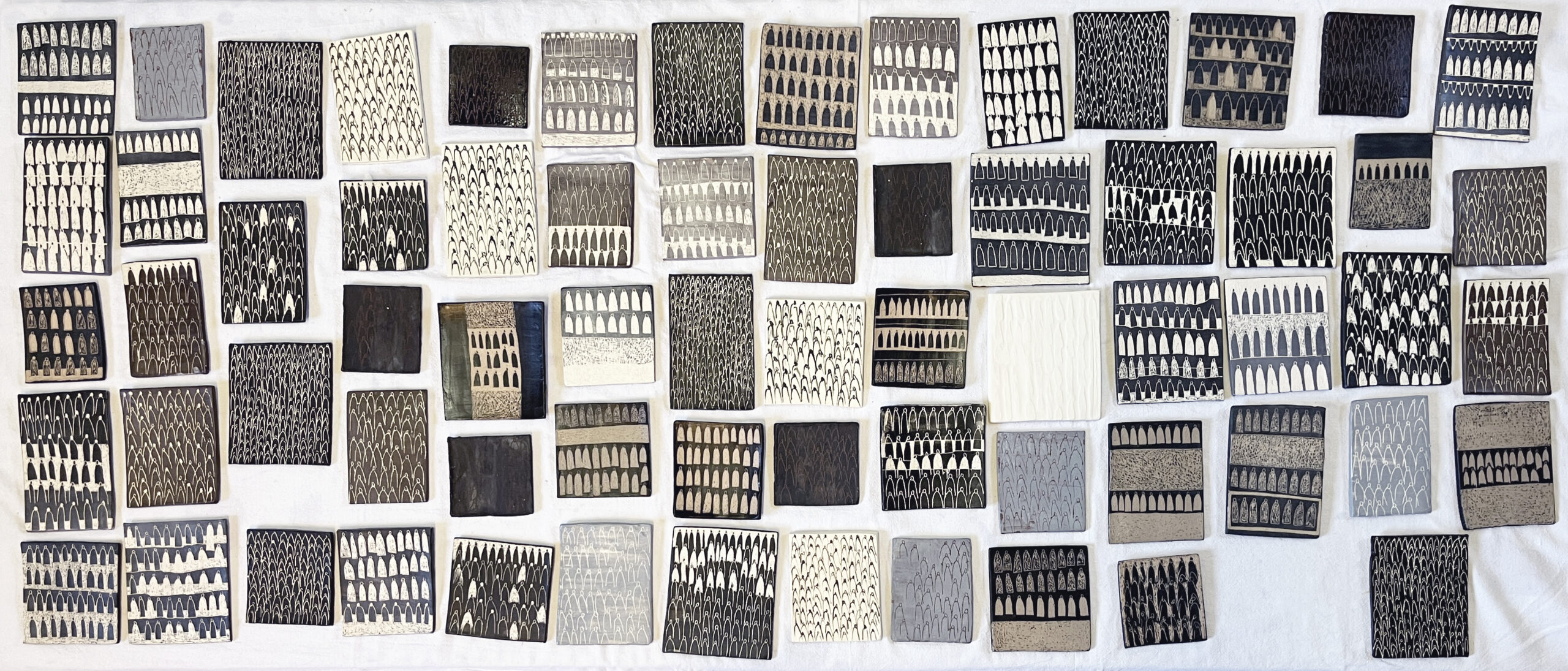 Serie: El hombre imaginarioPolíptico.Esgrafiado sobre cerámicaMateriales Engobe, loza y gres.Medidas: Variables (Rango entre 9 x 9 x 0.3 / 12 x 12 x 0.4)
