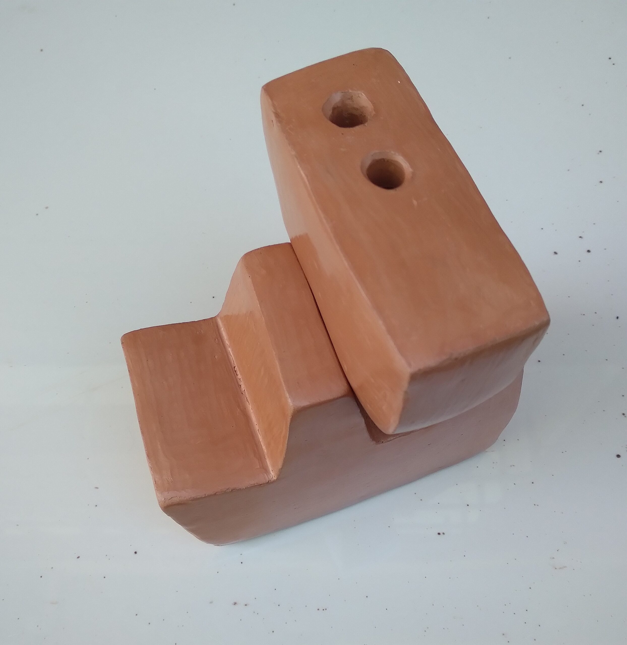 Arcillas locales provenientes del litoral santafesino y las sierras cordobesas. Técnica extrusado. Modelado directo, torno. Engobes de manganeso. Bruñido a piedra. Horneado a 900° Medidas: variables